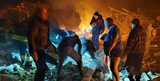 Спасатели разбирают завалы дома в Житомире, который подвергся авиаудару.