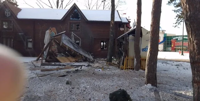 Как видно на снимках, снаряды повредили несколько киосков на территории, на территории видны воронки, один из боеприпасов приземлился неподалеку от аттракциона "американские горки".