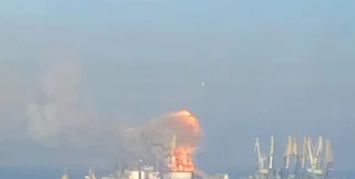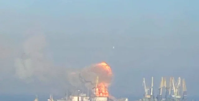 В порту оккупированного Бердянска уничтожен большой десантный корабль РФ "Орск" (видео)