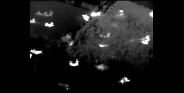 Судя по видео, беспилотник, с которого корректировался огонь, оснащен тепловизором.
