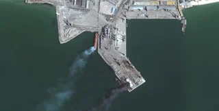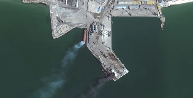 Maxar показала, как выглядит сгоревший российский корабль в порту Бердянска (фото)