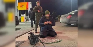 "Кадыров в Мариуполе": главу Чечни застали в молитве с пулеметом на заправке Роснефти (фото)