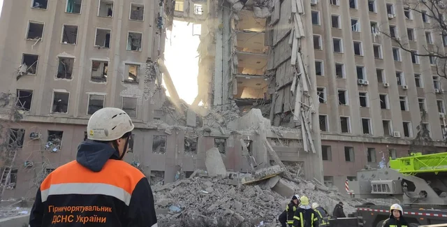 Выяснилось, что в результате атаки здания ВС РФ разрушена его центральная секция — с 9 по 1 этаж, без последующего горения.