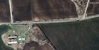 Американская компания Maxar Technologies опубликовала спутниковые снимки, на которых видно, что российская техника продолжает движение в Белгородской области вблизи населенных пунктов Солоты и Валуйки по дороге, которая ведет к пограничной с Украиной территорией. Об этом сообщатся в Twitter компании Maxar Technologies.