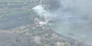 Выстрелы из 30-мм пушки БТРа поразили российскую бронетехнику во время боестолкновения.