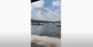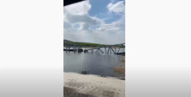 Очевидцы опубликовали видео, на котором видно взорванный мост через реку Северский Донец.