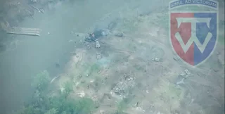 Помимо уничтоженной водной переправы, на видео можно увидеть ликвидированную военную технику РФ, на которой, видимо, оккупанты пытались попасть на другой берег реки.