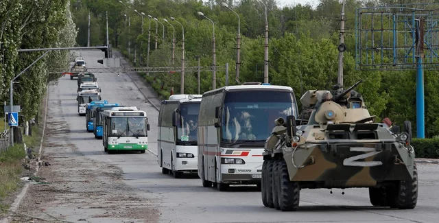 В тот же день СМИ сообщили, что примерно десять автобусов с украинскими военными выехали с территории завода "Азовсталь". Генеральный штаб Вооруженных Сил Украины указал, что из Мариуполя были эвакуированы 53 тяжелораненых украинских военных — их отвезли больницу оккупированного Новоазовска Донецкой области, и еще 211 бойца — в оккупированную Еленовку Донецкой области.