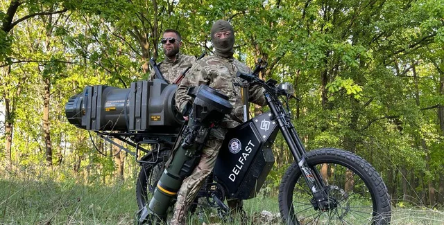 Украинские военные оснастили электробайки Delfast контейнерами для ракет NLAW. Об этом сообщает гендиректор компании производителя Даниил Тонкопий в Фейсбуке.