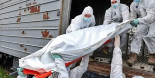Мешки с трупами оккупантов грузят в вагон-рефрижератор | Фото: REUTERS