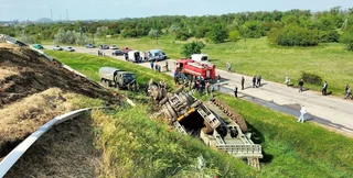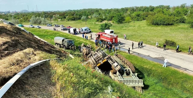 В посте также говорится, что перевернувшийся трал перевозил танк, двое российских военных получили тяжелые травмы. В свою очередь портал "Преступности.НЕТ" сообщает, что в результате инцидента один военный РФ погиб, а второй тяжело ранен. На снимках с места происшествия можно увидеть три машины скорой помощи и пожарный автомобиль, рядом с которыми стоит грузовой "Камаз" с буквой Z на кабине.