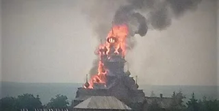 Пожар в Святогорской лавре после обстрела ВС РФ. | Фото: Скриншот