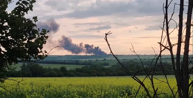 Бойцы сняли на видео, как российский самолет падает. Указывается, что сбили штурмовик в небе над Ореховом, что всего в 60 км от Запорожья. Видеоролик сопровождается эмоциональными комментариями автора.