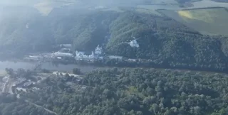 Святогорск расположен всего в 30 км от Славянска. В сети также появились кадры уничтоженного моста между Святогорской лаврой и другим берегом Северского Донца. Российская сторона заявляет, что "националисты" специально уничтожили мост, чтобы ВСУ не могли отступить.