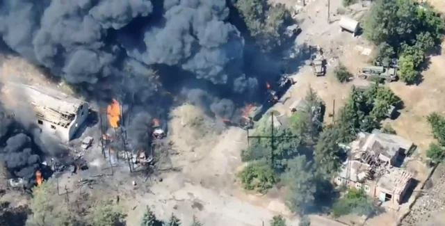 Подразделение материально-технического обеспечения находилось в полевых условиях, где российские войска заправляли и обслуживали военную технику. Артиллерийским ударом были уничтожены: