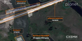 Российские военные достроили понтонную переправу через реку Оскол в районе села Купянск. Об этом сообщают журналисты "Схем", получившие спутниковые изображения от 19 июня.