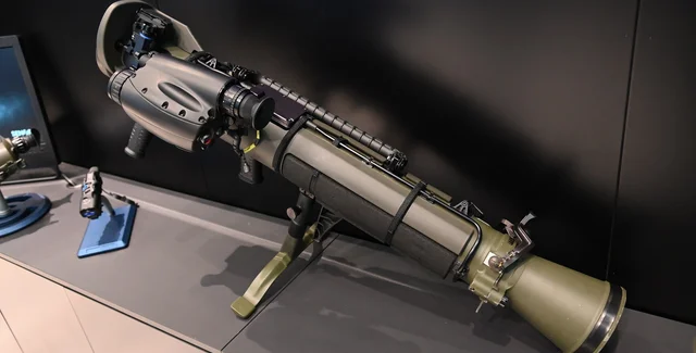 Шведские гранатометы производства Saab Bofors Dynamics изготавливает многоразовый гранатомет калибра 84 мм. За свою историю гранатомету неоднократно меняли конструкцию. Теперь же на выставке показали две новых версии цифровизации гранатомета: