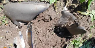 ГСЧСники также обнародовали фото с места инцидента. На фотографии видны части от российской ракеты.