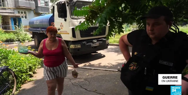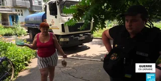 Во время общения журналистов с гражданскими ВС РФ начали обстреливать прифронтовой город из артиллерии, из-за чего съемочной группе France24 и мирным пришлось побежать в укрытие.