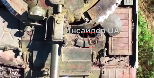 Оператор украинского дрона сбросил гранату в открытый люк вражеского танка Т-62. Об этом сообщает InformNapalm.