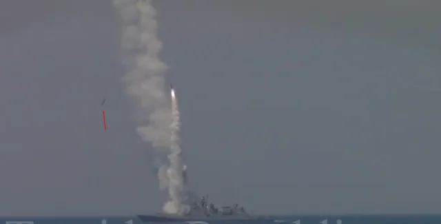 4 июля с российского корабля проекта 11356 "Буревесник" был массовый залп ракет по украинской территории. На видео виден запуск крылатых ракет морского базирования. Всего было выпущено четыре ракеты. Первая вскоре после пуска упала в море недалеко от корабля, с которого ее запускали.