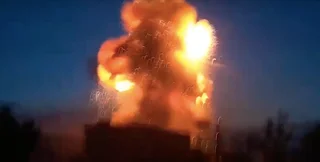 На опубликованных кадрах видны летящие снаряды и дальше — пламя, охватившее здание. Число жертв обстрела российских войск в городе Донецкой области возросло до 31 человека, десятки оказались под завалами.