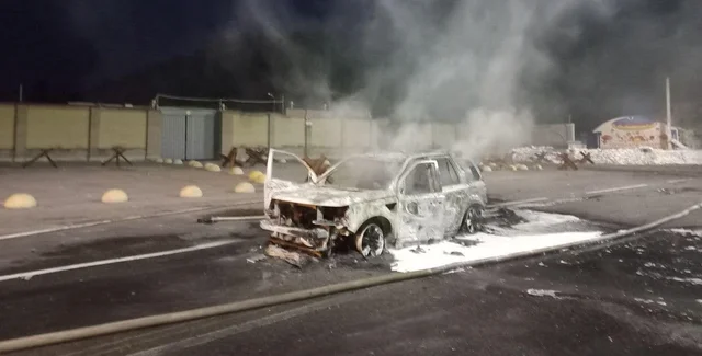 Горящий автомобиль в Днепре после обстрела 16 июля