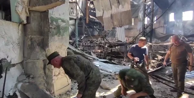 Позже в Телеграм-каналах россиян было опубликовано еще одно видео. На нем – здание белого цвета с окнами под крышей и синими воротами, на которых указано, вероятное количество пленных – 193 человека, внутри – изломанные двухэтажные нары и обгоревшие тела.