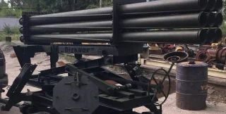 В качестве направляющих на самодельной реактивной системе установлены 9 модулей от РСЗО БМ-21 "Град", которые вероятно были сняты с поврежденных систем.