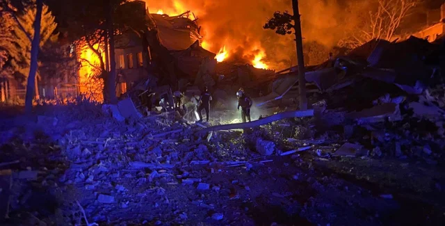 Удар российских оккупантов пришелся по Салтовскому району города. Снаряд попал в здание общежития – оно полностью уничтожено.