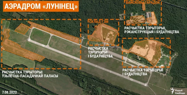 На аэродроме в Лунинцах активно расширяют территорию для строительства военных объектов на нем. Об этом сообщает "Радио Свобода" белорусской редакции.