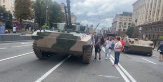 Своеобразный парад уничтоженной техники РФ устроили в рамках празднования Дня независимости Украины. Он указан в списке праздничных мероприятий, накануне обнародованных Министерством культуры и информационной политики. По плану ведомства, 24 августа знаковые места в столице подсветят синим и желтым — цветами государственного флага Украины, в священники помолятся за страну в Национальном заповеднике София Киевская.