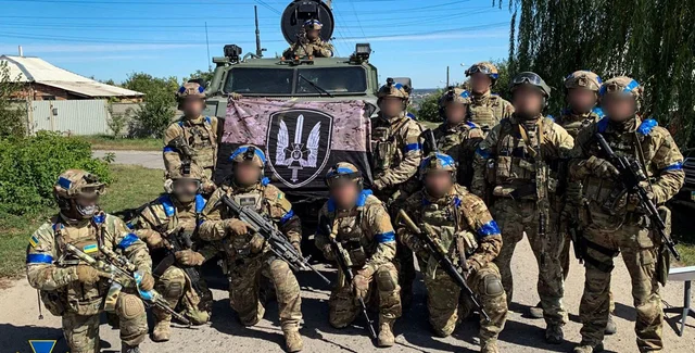Она опубликовала фотографии из Купянска, на которых запечатлены бойцы Центра специальных операций СБУ "Альфа". Военные позируют на одной из улиц города на фоне украинской бронированной колесной машины новатор.