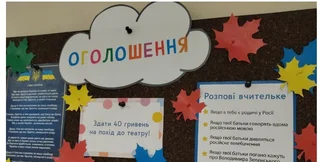 Пропагандисты даже опубликовали соответсвующую фотографию. На ней изображена школьная доска объявлений. На ней — плакат со словами украинского гимна, изображение пса Патрона и объявление о сдаче 40 гривен на поход в театр.