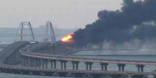Напомним, сегодня утром в России сообщили, что на Крымском мосту взорвали грузовой автомобиль. В результате произошло частичное обрушение двух автомобильных пролетов, но арка над судоходной частью не повреждена. Известно, что взрыв привел к возгоранию семи цистерн с топливом в железнодорожном составе.