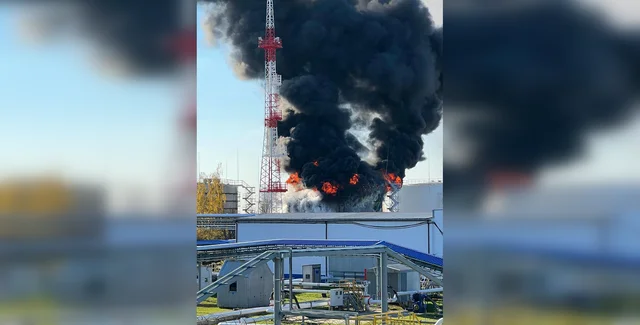 По его словам, один из артиллерийских снарядов попал в здание на территории нефтяной базы в Белгородском районе. Вячеслав Гладков опубликовал фотографию с места происшествия, на котором видно, что пламя поднимается на десятки метров, а густой столб черного дыма — еще выше.