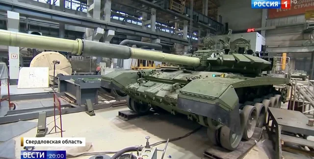 В России начала дополнительно усиливать область возле маски орудия танка Т-72Б3. Предположительно, такое же будет и на других российских танках Т-90 и Т-80 в ходе восстановительных работ. В репортаже пропагандистов из цехов "Уралвагонзавода" хорошо видно наращивание бронирование возле орудия на башне.