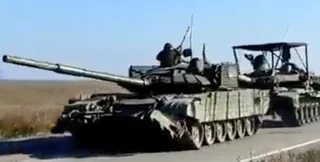 На опубликованном видео видно как трофейный танк Т-72Б3 взял на прицеп новозахваченный Т-90. Как пишет журналист, это либо базовая версия Т-90А либо же экспортный вариант Т-90С. Получили танк по "российскому ленд-лизу" бойцы из состава 29-й механизированной бригады.