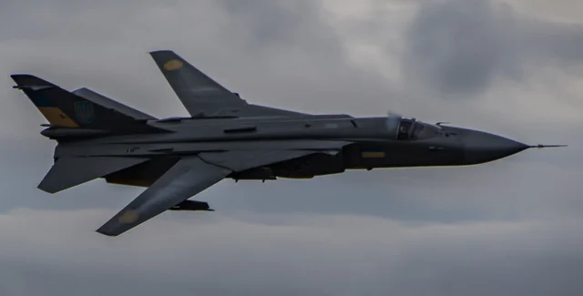 Украинский бомбардировщик Су-24М замечен в необычном сером камуфляже