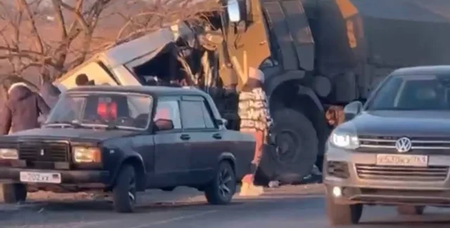 Между двумя городами произошло серьезное ДТП, в результате которого погибло 16 человек, еще 3 находятся в критическом состоянии. Российский военный грузовик перевозил военных, однако все погибшие — это пассажиры микроавтобуса.