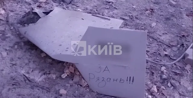 На видео представлен обломок данного БПЛА. Оккупанты написали на нем маркером "За Рязань".