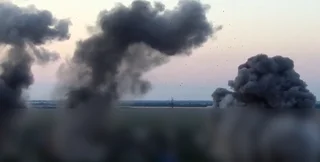 Местные Телеграм-каналы даже опубликовали первые фото с места инцидента. На снимках видно, как в районе попадания российской ракеты в небо поднимается серый дым.