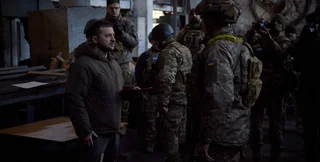Глава украинского государства совершил свою самую опасную с февраля поездку на передовую, вручив в разрушенном Бахмуте медали солдатам под грохот артиллерии.