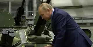 "Заканчиваете уже?" — спросил он у рабочих, которые стояли рядом с образцом техники.
