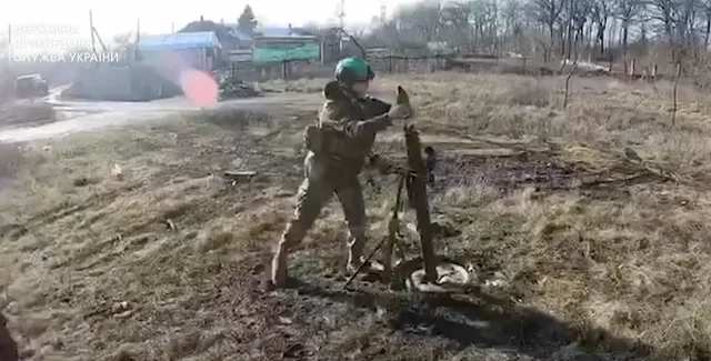Украинские пограничники атаковали вражеские силы из миномета, принудив ВС РФ покинуть свою позицию.