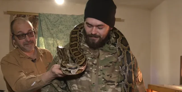 "Нам привезли куриное мясо — он его сырым съел. Когда я питона привез в Харьков, запустил в квартиру и квартира стала его, а не моя. Я не мог зайти в квартиру — когда выпустил его, начал бояться… Оставить его с девушкой побоялся, ведь это большая змея. Позвонил волонтерам и говорю: у меня есть 3-метровый питон, его надо куда-то пристроить. Они спросили, где я его взял. Я ответил — трофей, отбитый у россиян", — описівает он ситуацию.
