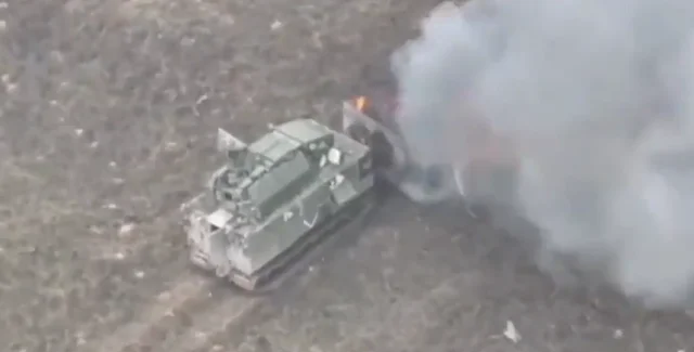 Артиллеристы с беспилотника зафиксировали уничтожение российского ЗРК Тор-М2ДТ, который создан на вездеходе ДТ-30. Сообщается, что поразили комплекс ПВО бойцы 406-й отдельной артиллерийской бригады имени генерал-хорунжего Алексея Алмазова.