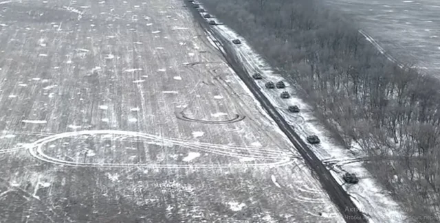 Россияне ехали несколькими колоннами одна за другой, при чем ехавших во второй не остановило то, что их товарищей впереди ВСУ разнесли вдребезги.