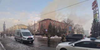 Сразу же стало известно о задымлении в районе Крытого рынка. Позже пропагандисты уточнили, что под удар попало здание российской прокуратуры.