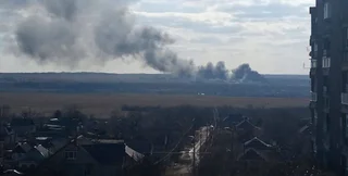 На фотографиях видно, как над оккупированным городом поднимается черный столб дыма.